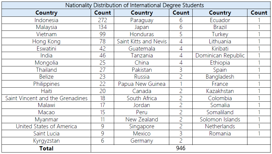 International Student Enrollment Statistics (Degree Students, excluding Exchange Students and Chinese language Students)